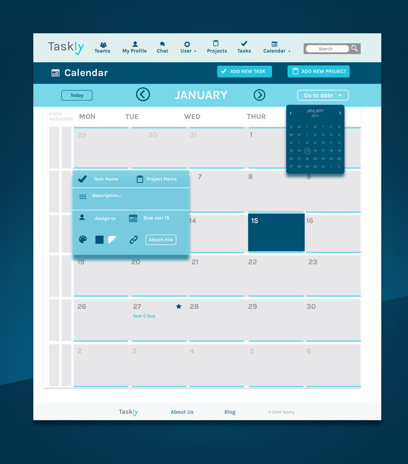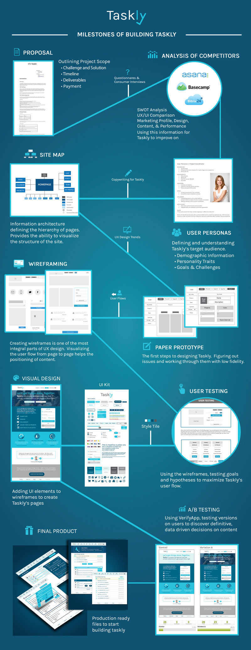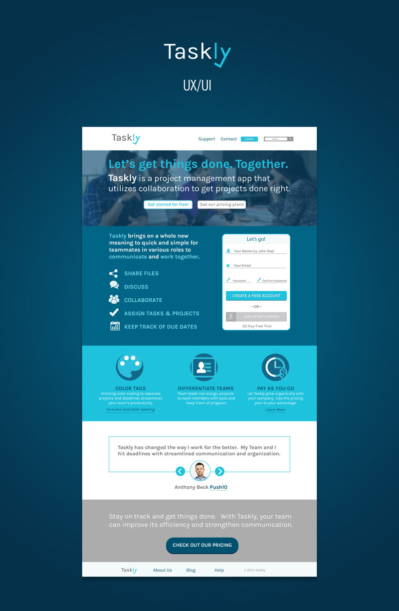 In October of 2014, I began an intensive UX and UI design course with Career Foundry. I learned the ins and outs of UX and UI over four months. The following few pages are the final results of creating a project management web app called Taskly.